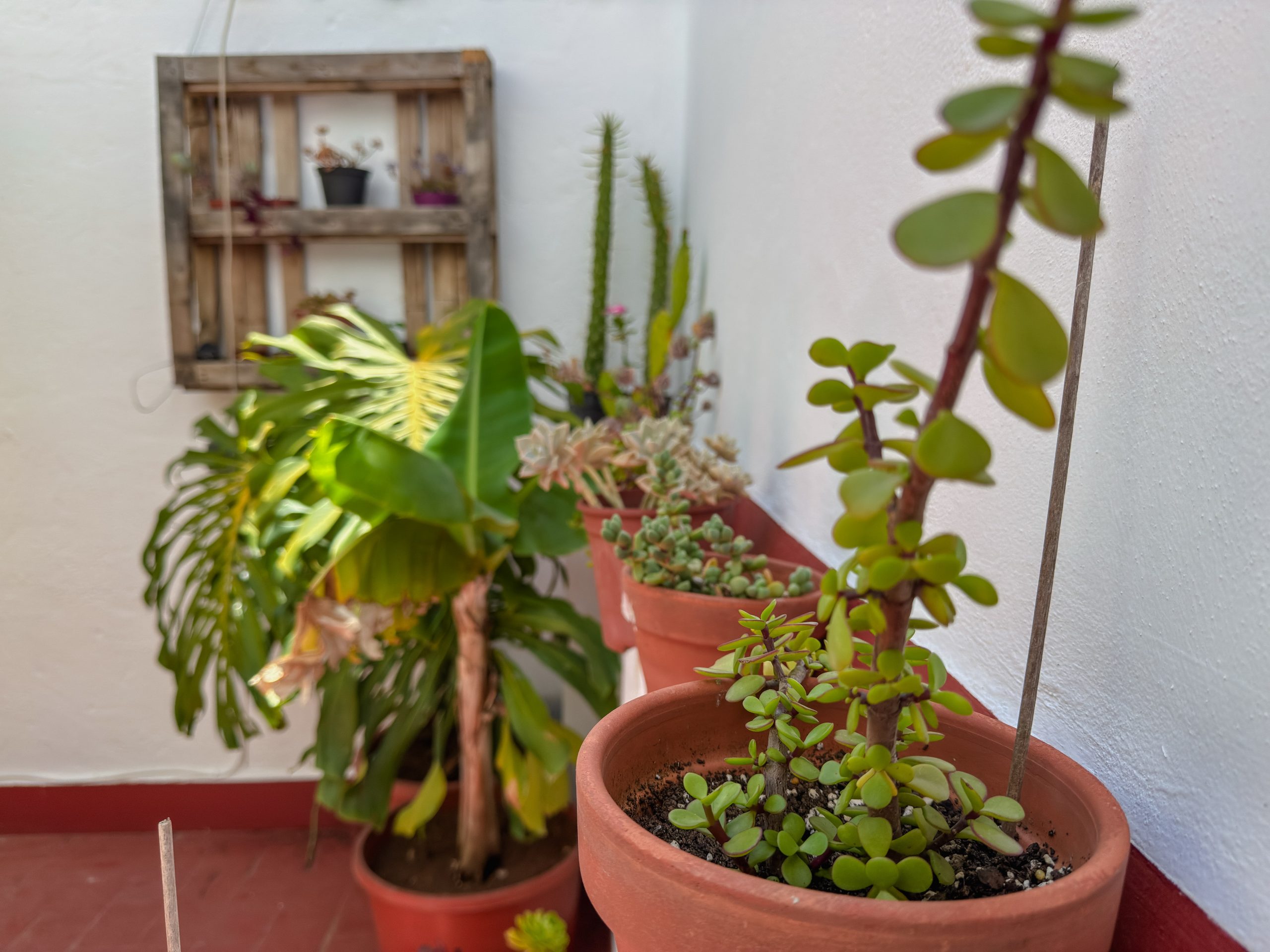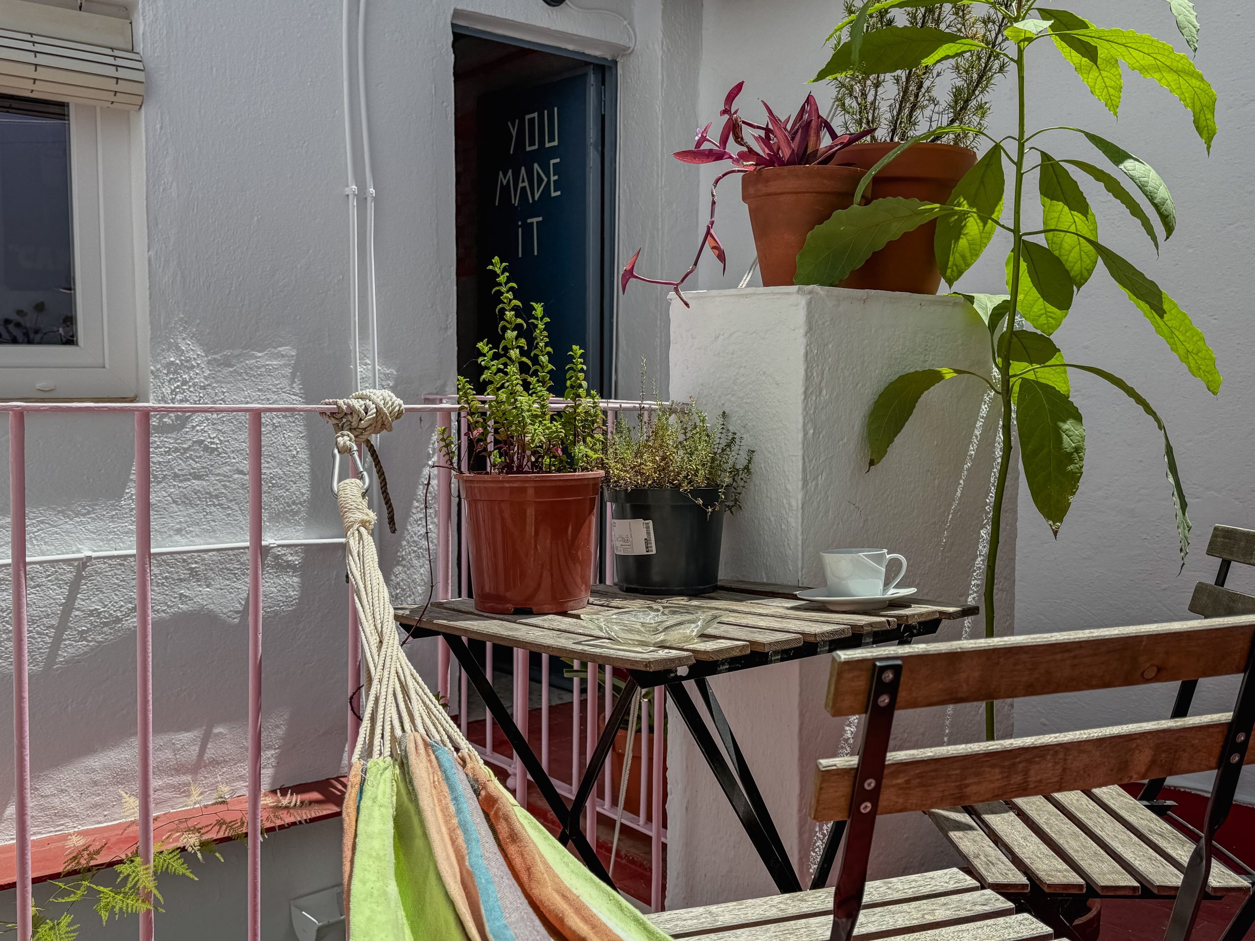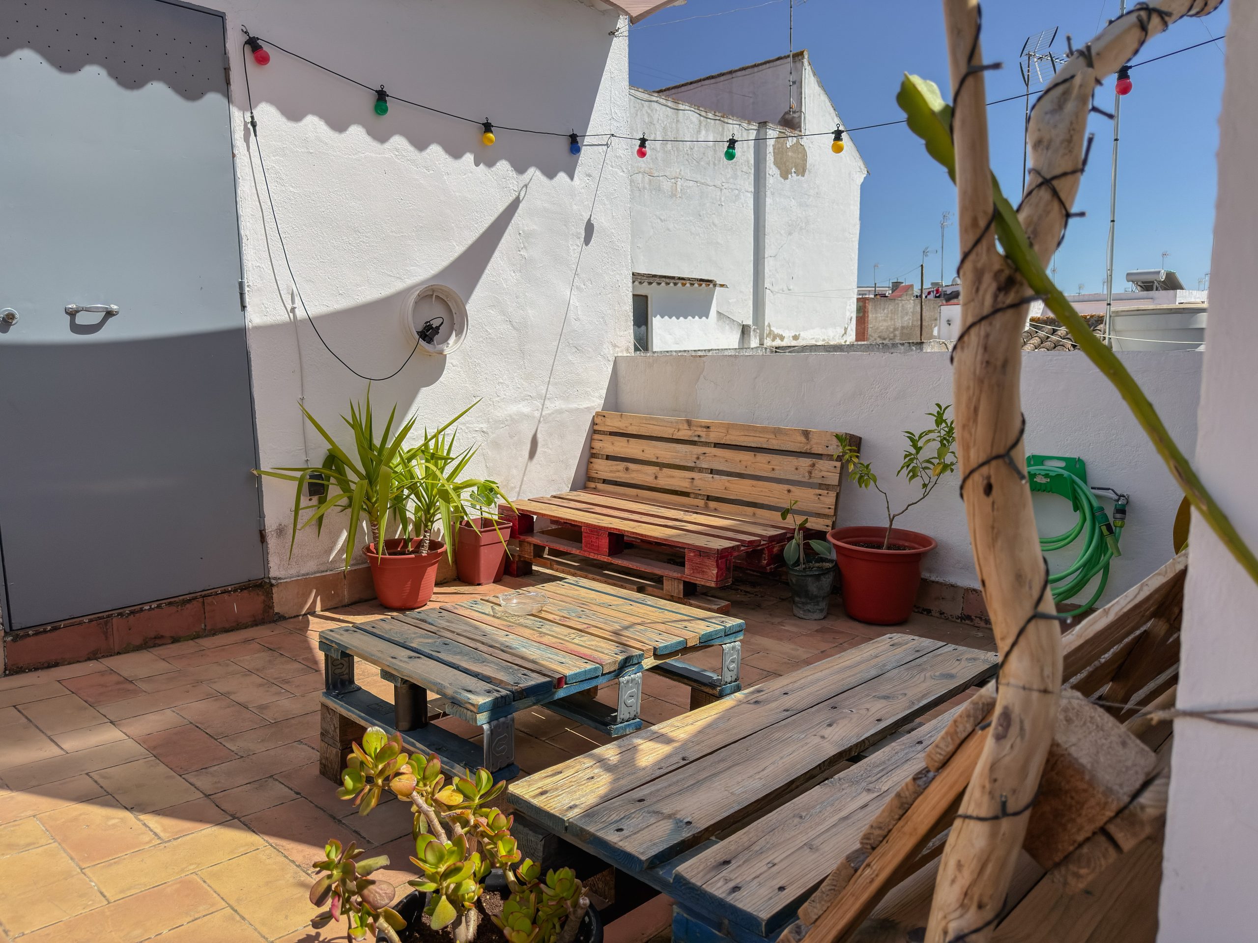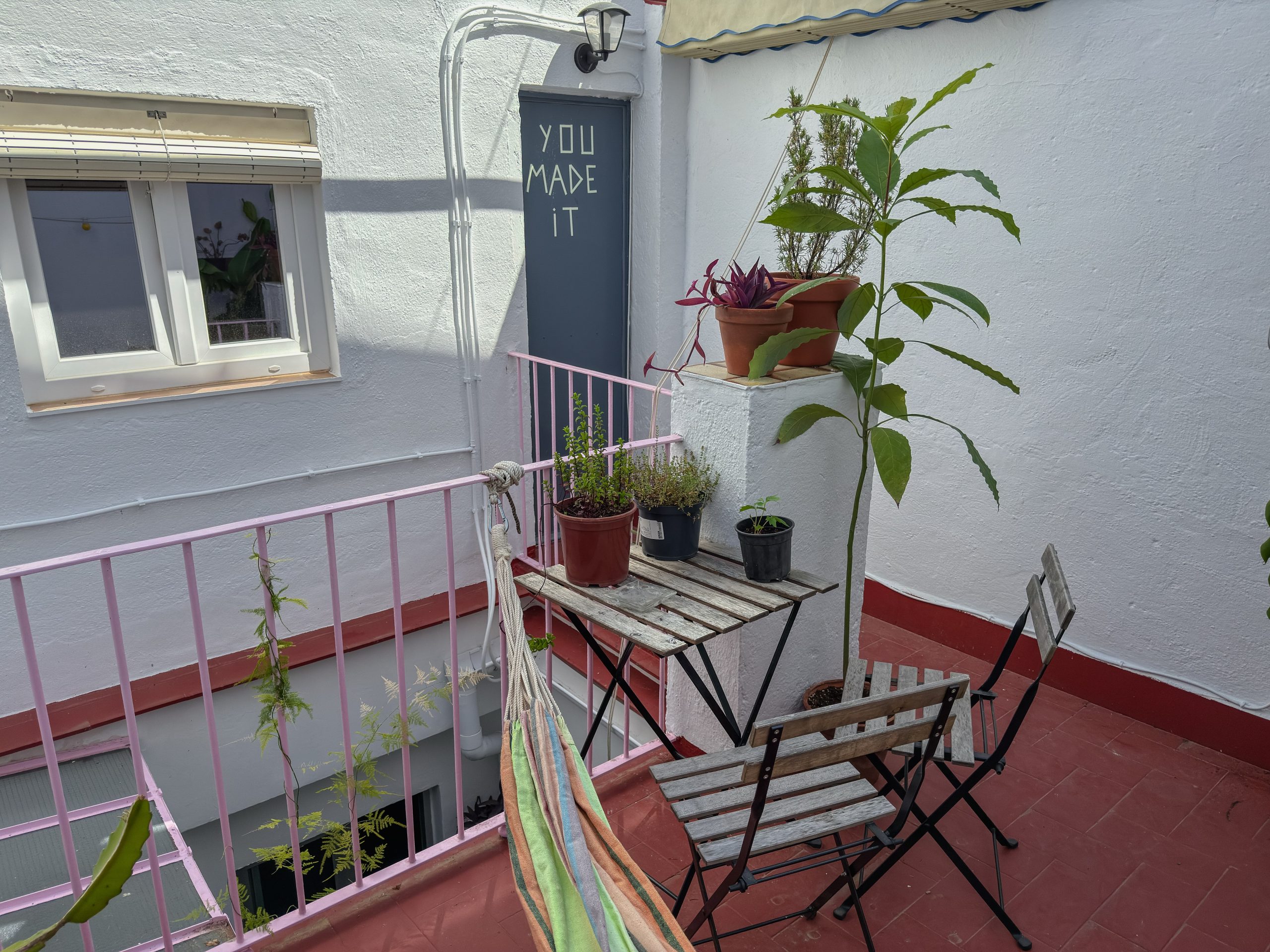 Aparte de la zona de estudio, tenemos una pequeña sala multiusos donde poder hacer café, una terracita preciosa llena de plantas y una gran azotea donde poder relajarse y tomar el sol al aire libre.